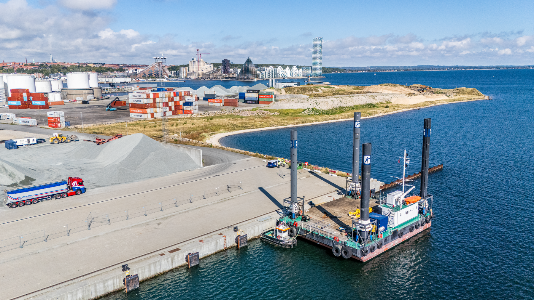 This week marks the start of the completion of the Omniterminal at the Port of Aarhus. This happens when MT Højgaard Danmark goes into the water and places the first steel plates for what will end up being 430 meters of new quay.